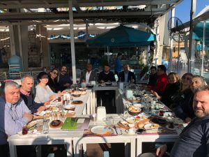 Toplantının ertesi günü ise Yönetim kurulu eşliğinde Marina Alaçatı’da Adana ve Mersin Danışmanları ile birlikte kaynaşma kahvaltısı düzenlendi. Kahvaltı, Yönetim Kurulu Başkanı Muhsin ÇINAR (McMEDA Eğitim ve Danışmanlık) ve Üyelerden Harun EVCİMEN (EVCİMEN Danışmanlık ve Müşavirlik) , Önder ÇELİK (AF-İŞ Danışmanlık) , Hamdi ÇELİK (ARC Organizasyon Danışmanlık) , Osman DEMİRKOL (KASEM Danışmanlık), İlker SATİ (EBRAR Eğitim ve Danışmanlık) ve Saadet COŞGUN (ÜÇES Danışmanlık) eşliğinde Mersin üyelerimizden İNAN Danışmanlıktan Mustafa İNAN, ASSER Danışmalıktan Gökben ve Murat KORKMAZ, Adana üyelerimizden NETT Yönetim Danışmanlıktan M. Tamer AVŞAR , ÖDÜL Danışmanlık Hizmetlerinden Burak Can ÇERİ katılımlarıyla gerçekleşti. Ayrıca Bölge danışmanlarından BİNNUR YETİK Proje ve Eğitim Danışmanlıktan Binnur YETİK ve 5 ADIM Danışmanlıktan Filiz BALCI derneğimizin davetine iştirak ederek kahvaltımıza katıldılar.