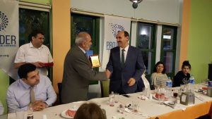 Üyelerimizle hibe veren kurumların yetkililerini buluşturan toplantılar devam ediyor. Ramazan vesilesiyle 13 Haziran’da Adana’da gerçekleştirilen iftar programına Adana İl Tarım Müdürü Muhammed Ali TEKİN iştirak etti. İl Müdürü TEKİN, yemek sonrası yaptığı konuşmada KKYDP programı kapsamında verilen hibelerin kırsal kalkınmaya yaptığı katkılar konusunda bilgi verirken bu yatırımların gerçekleşmesindeki başarılarından dolayı PROJEDER üyesi danışmanları tebrik etti.
